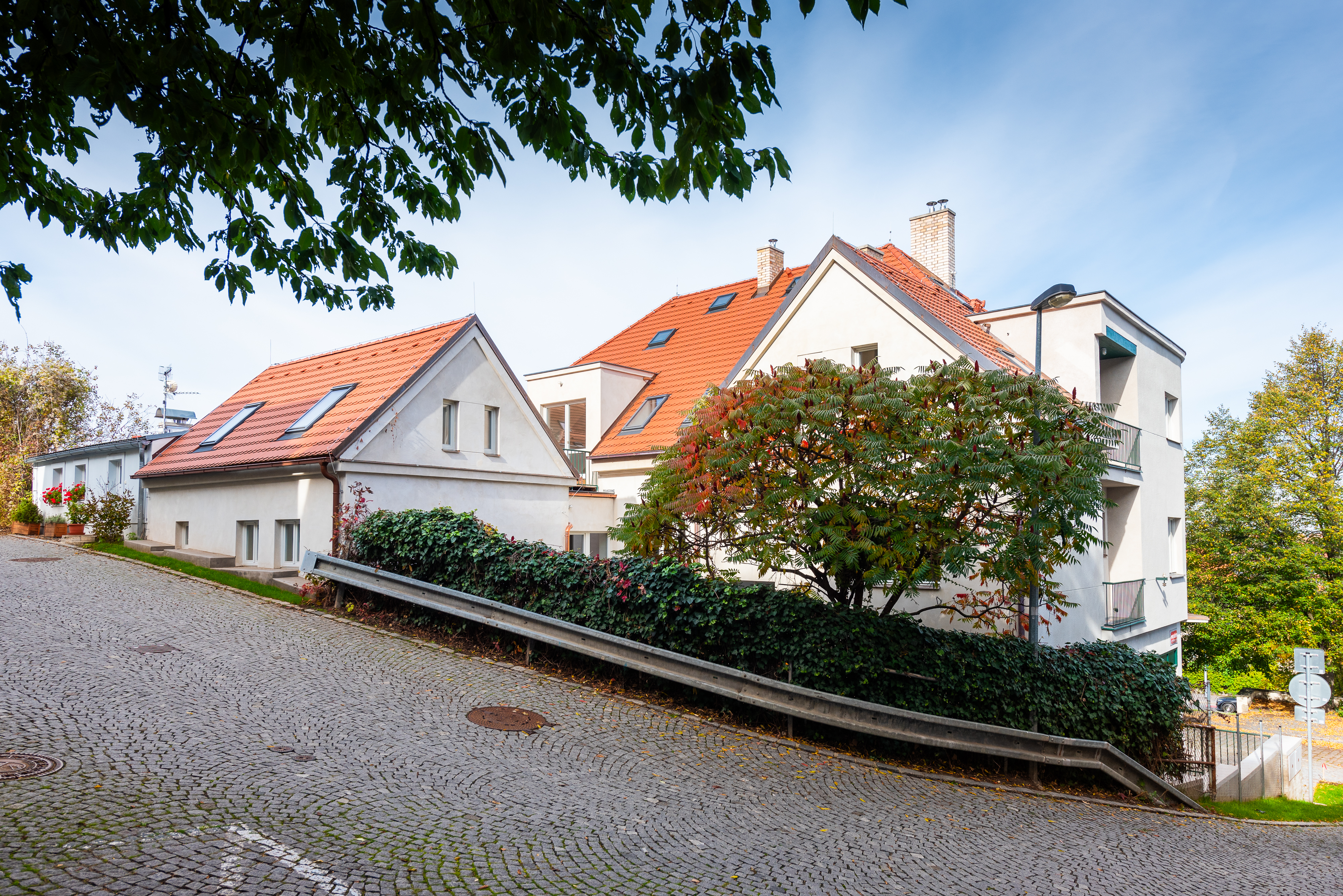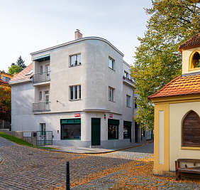 Byt o dispozici 5+kk s podlahovou plochou 193,5 m², terasou 18 m² a lodžií 2,2m² se nachází v prestižní rezidenční lokalitě Staré Střešovice s nezapomenutelnými výhledy na Ořechovku a Hanspalku. Nemovitost je situována ve vilovém domě puristického stylu z roku 1932, který prošel kompletní rekonstrukcí a zároveň architektonicky citlivou přístavbou. Přístavba doslova levituje na subtilních ocelových sloupech a ponechává tak pod sebou volný zastřešený dvůr. I přes rozšíření o přístavbu je zachována kategorie rodinného domu se 3 prostornými byty. V patru je situována komerční jednotka a kancelář, pod celou přístavbou je otevřená garáž s parkováním pro 5 vozů. Tečkou za snažením je obnovení provozu pekárny se vstupem v nároží a restaurovanými výlohami. Restaurováno bylo také domovní teracové schodiště s podestami a sokly ze slinuté prvorepublikové dlažby, trubkové zábradlí s dřevěným madlem.