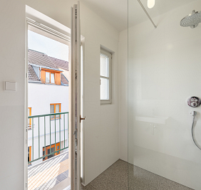 Dispozice bytu ve třetím nadzemním podlaží je koncipována s důrazem na velkorysost a jasnou prostorovou logiku. Dominantou je propojený obytný prostor orientovaný do klidového vnitrobloku, připravený pro instalaci kuchyně i krbu. Na hlavní obytnou část navazuje jižně situovaná terasa a lodžie, které přirozeně rozšiřují životní prostor do exteriéru. Součástí bytu jsou tři promyšleně umístěné pokoje s dostatkem soukromí a dvě koupelny. Jedna z koupelen se vyznačuje kultivovaným řešením s volně stojící vanou umístěnou u okna, kde přirozené světlo zvýrazňuje kvalitu použitých materiálů i celkový architektonický výraz. Druhá koupelna se sprchovým koutem, elegantně začleněná do místa původní lodžie, otevírá přímý vstup na balkon a nabízí autentický výhled do jedné z nejpůvabnějších uliček Starých Střešovic.