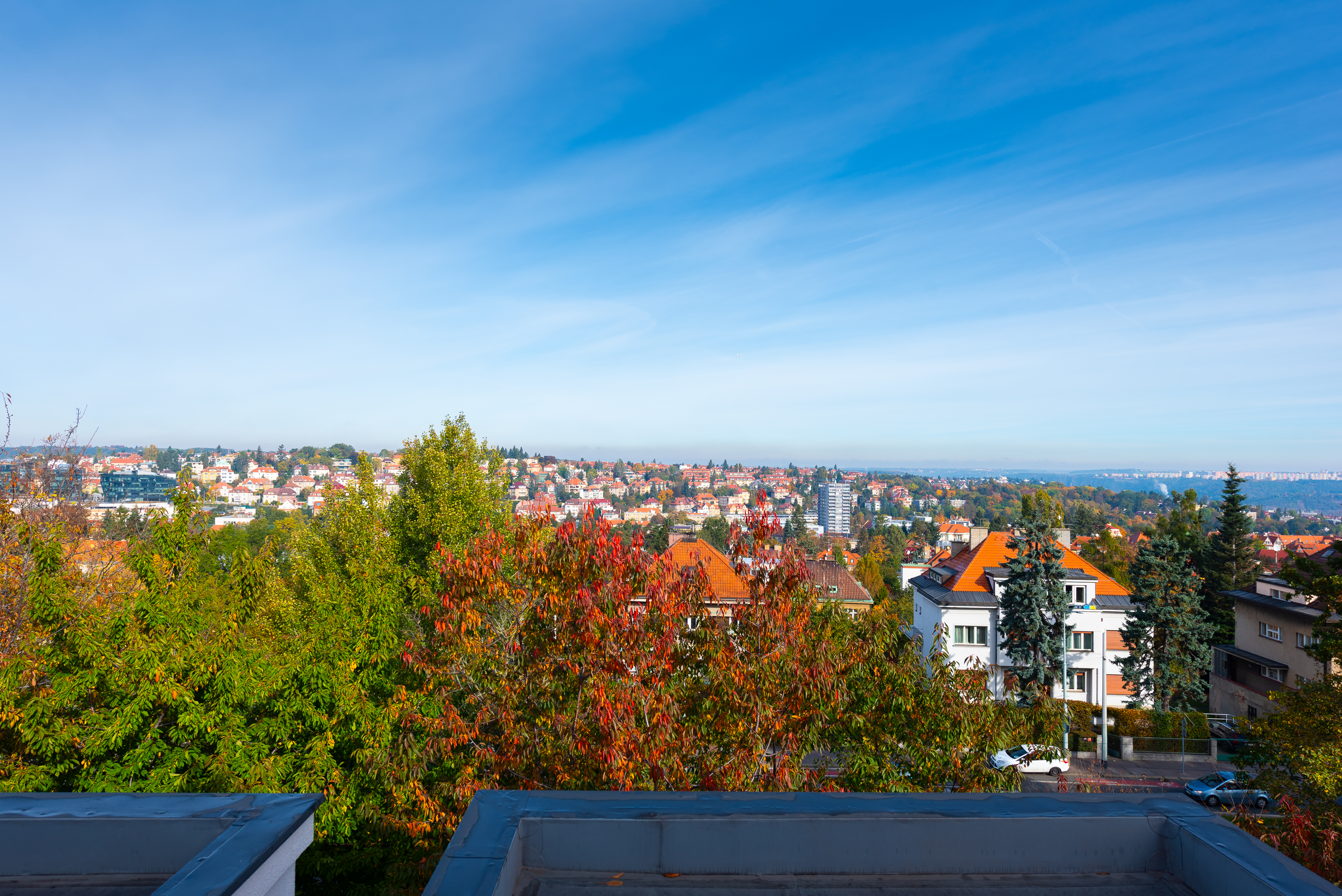 Byt o dispozici 5+kk s podlahovou plochou 193,5 m², terasou 18 m² a lodžií 2,2m² se nachází v prestižní rezidenční lokalitě Staré Střešovice s nezapomenutelnými výhledy na Ořechovku a Hanspalku. Nemovitost je situována ve vilovém domě puristického stylu z roku 1932, který prošel kompletní rekonstrukcí a zároveň architektonicky citlivou přístavbou. Přístavba doslova levituje na subtilních ocelových sloupech a ponechává tak pod sebou volný zastřešený dvůr. I přes rozšíření o přístavbu je zachována kategorie rodinného domu se 3 prostornými byty. V patru je situována komerční jednotka a kancelář, pod celou přístavbou je otevřená garáž s parkováním pro 5 vozů. Tečkou za snažením je obnovení provozu pekárny se vstupem v nároží a restaurovanými výlohami. Restaurováno bylo také domovní teracové schodiště s podestami a sokly ze slinuté prvorepublikové dlažby, trubkové zábradlí s dřevěným madlem.